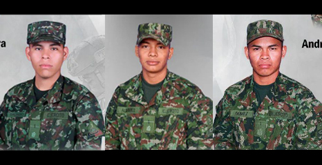 Los tres uniformados fallecidos fueron identificados como Andrés Esteban Álvarez Sierra, Darwin Arnoldo Gómez Gutiérrez y Brayan Steven Galindo Amado.