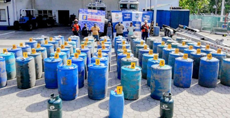 En la embarcación en la que se movilizaban los presuntos responsables fueron encontradas 74 canecas con capacidad para 55 galones cada una, una caneca grande con 15 galones del hidrocarburo, 2 cilindros de gas de 15 kilogramos, 5 celulares y cuatro motores fuera de borda.